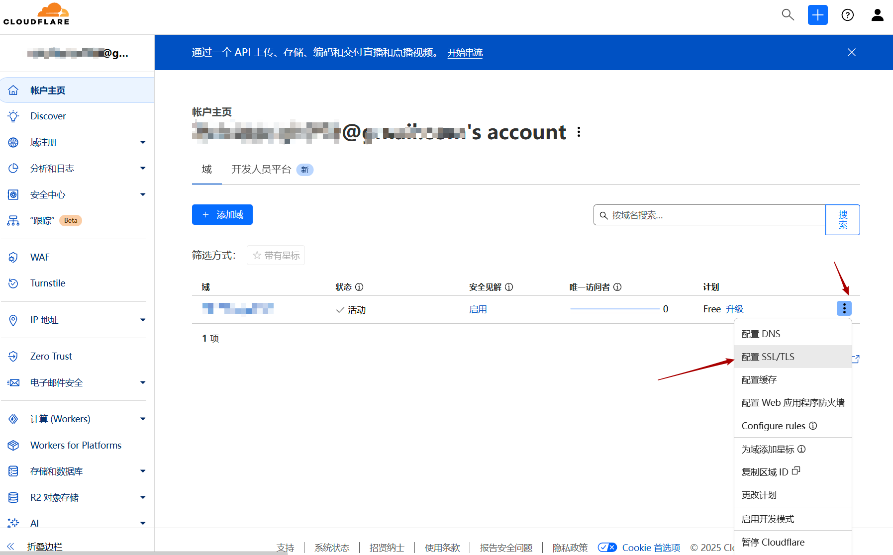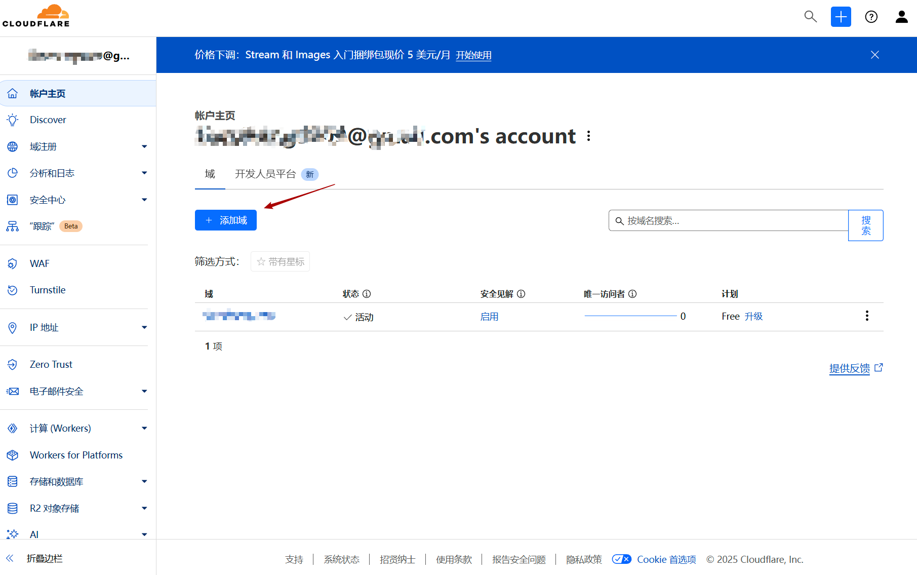 最后,在域名服务商将Cloudflare作为DNS解析服务器,添加域名完成。