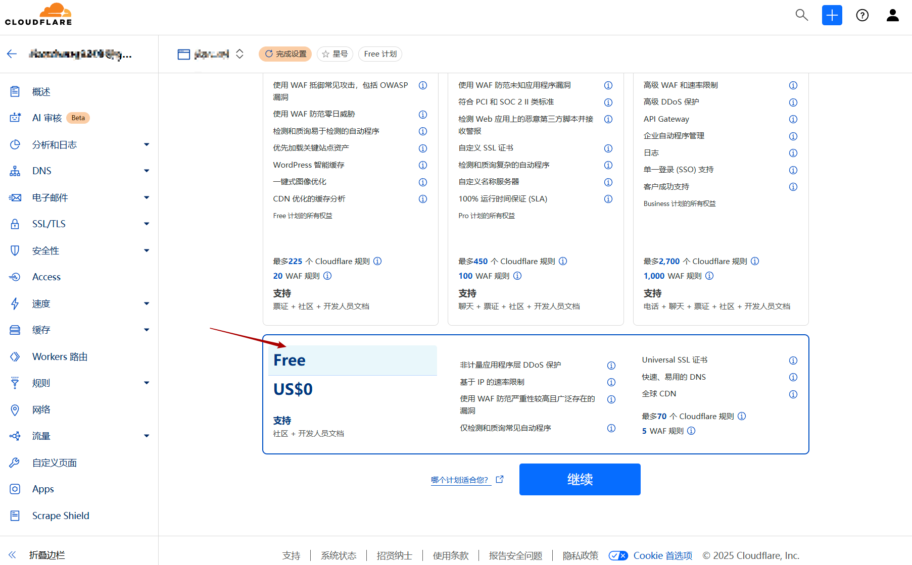 下一步,可以选择免费计划,如果想要更丰富的功能,也可以选择付费计划。
