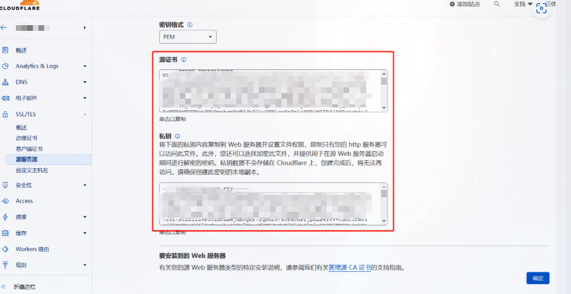 将pem和key配置到站点服务器,即可启用SSL。