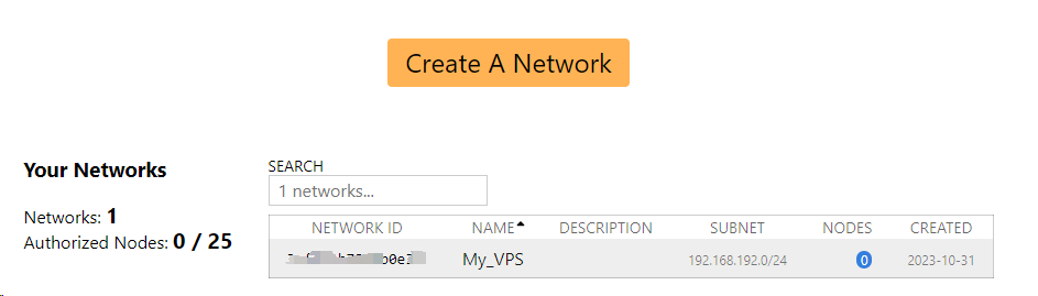 访问官网,注册登录之后,点击“Create A Network”按钮创建一个虚拟网络,会生成一个网络ID。