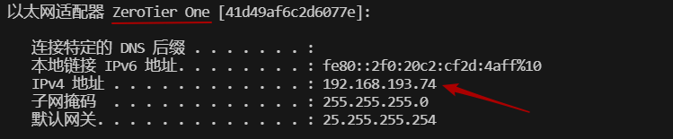 输入ipconfig查询分配的IP
