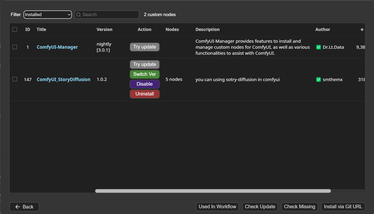 点击”Manager->node manager”, 安装ComfyUI_StoryDiffusion
