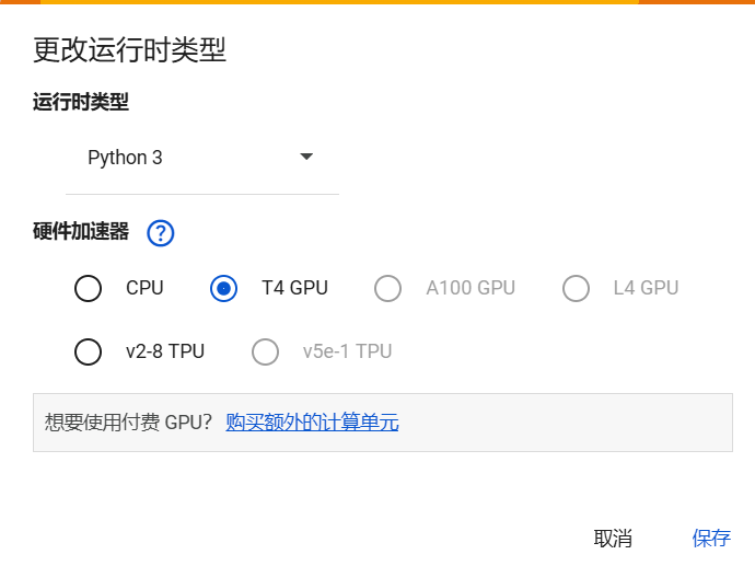- 在“硬件加速器”选项中选择 GPU