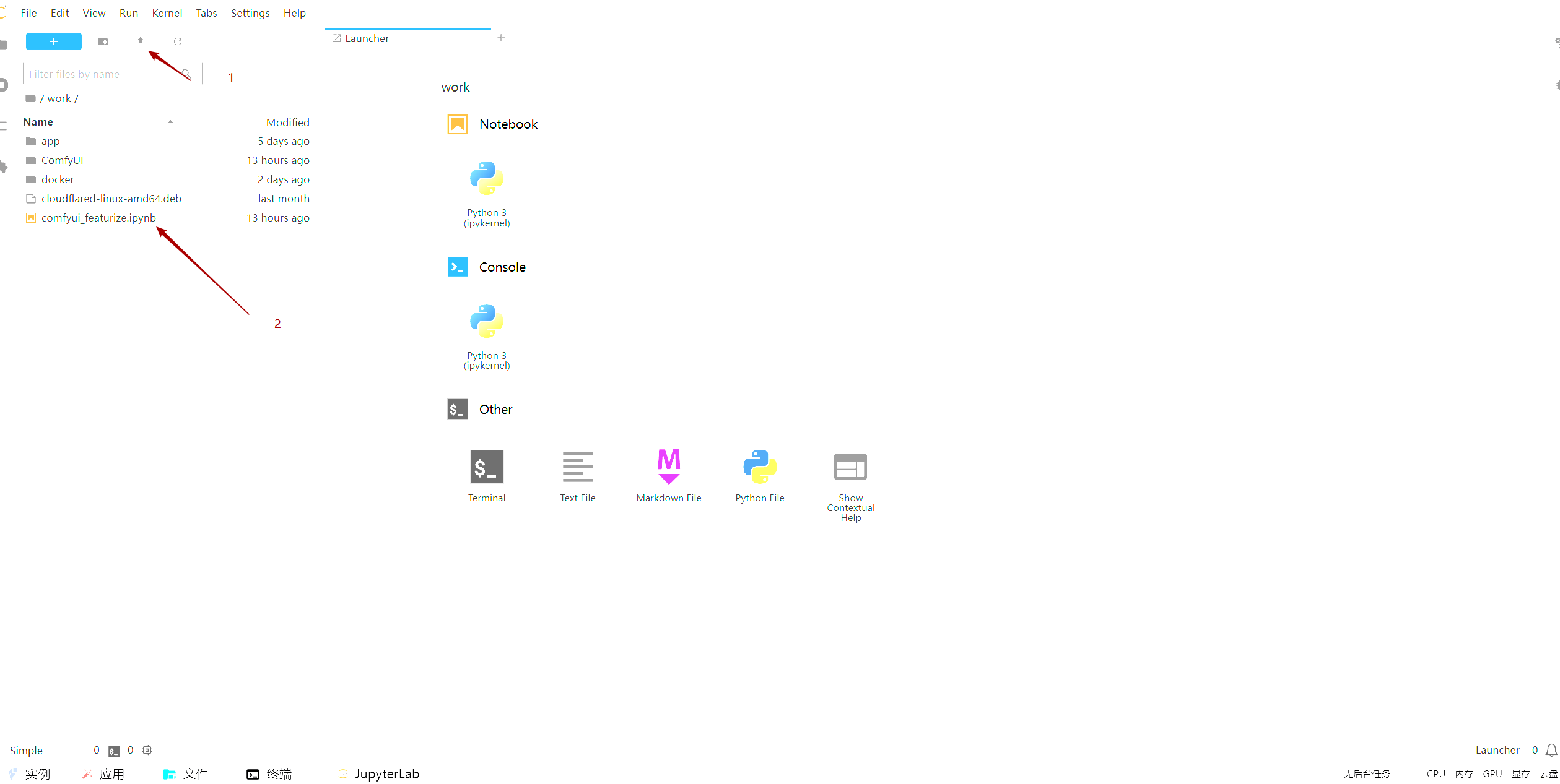 打开工作空间,选择文件夹,上传comfyui_featurize.ipynb